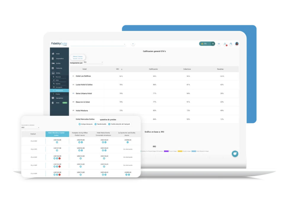 Manage your hotel’s reviews and compare your property’s reputation with that of your competitors on major online travel agencies (OTAs).