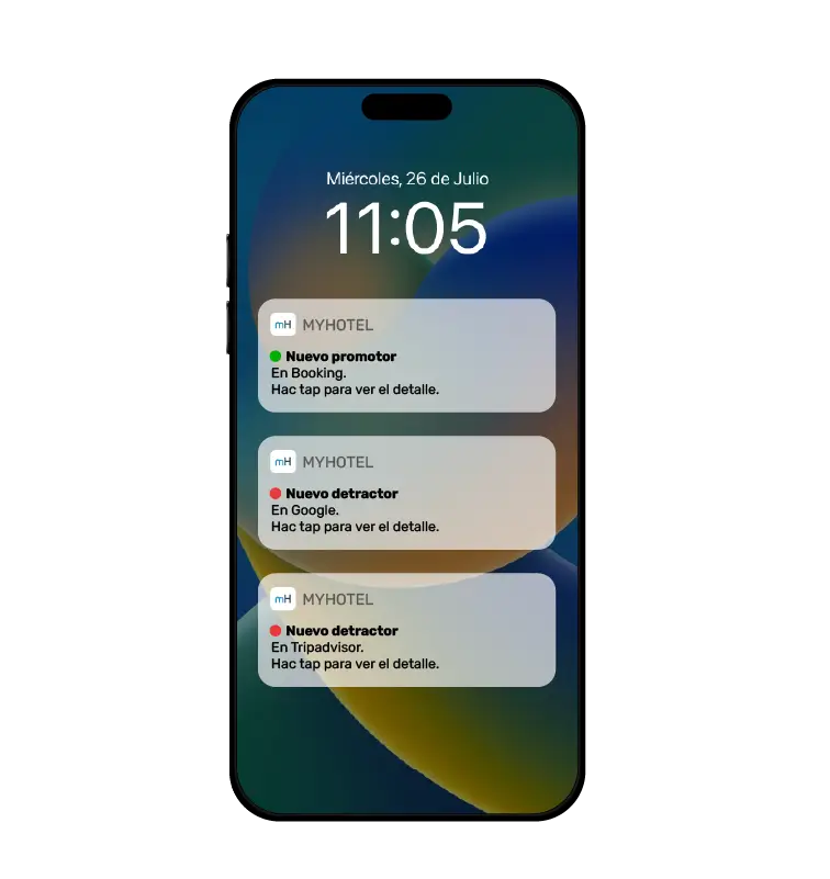 - Recibe una alerta cada vez que un huésped comparta una reseña de tu hotel