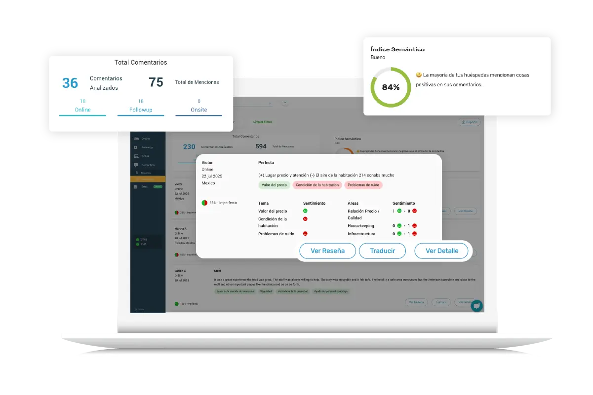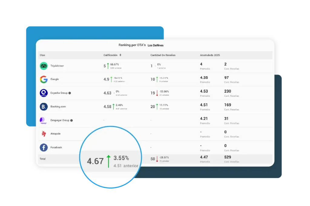 Monitorea tu reputación online frente a la competencia. Toma decisiones con datos reales y mejora la experiencia del huésped.