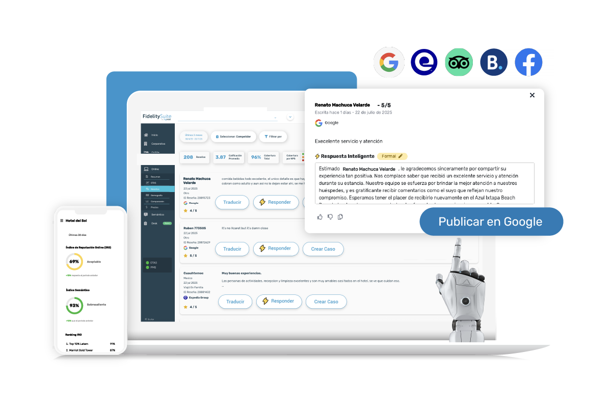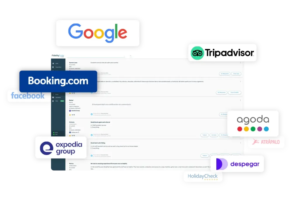 Reúne todas las reseñas de Expedia, Booking, Google, TripAdvisor y más para responder desde una sola plataforma